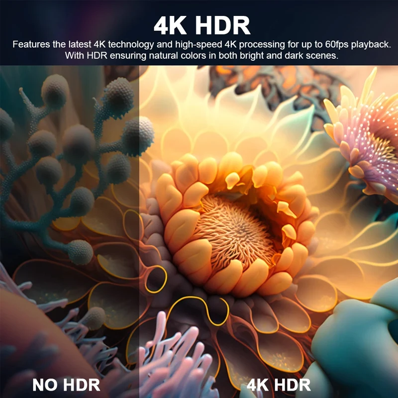 • دقة الفيديو: يدعم تشغيل محتوى 4K HD بمعدل 60 إطاراً في الثانية، مع دعم تقنيات HDR10+ وH.265 لفك التشفير.