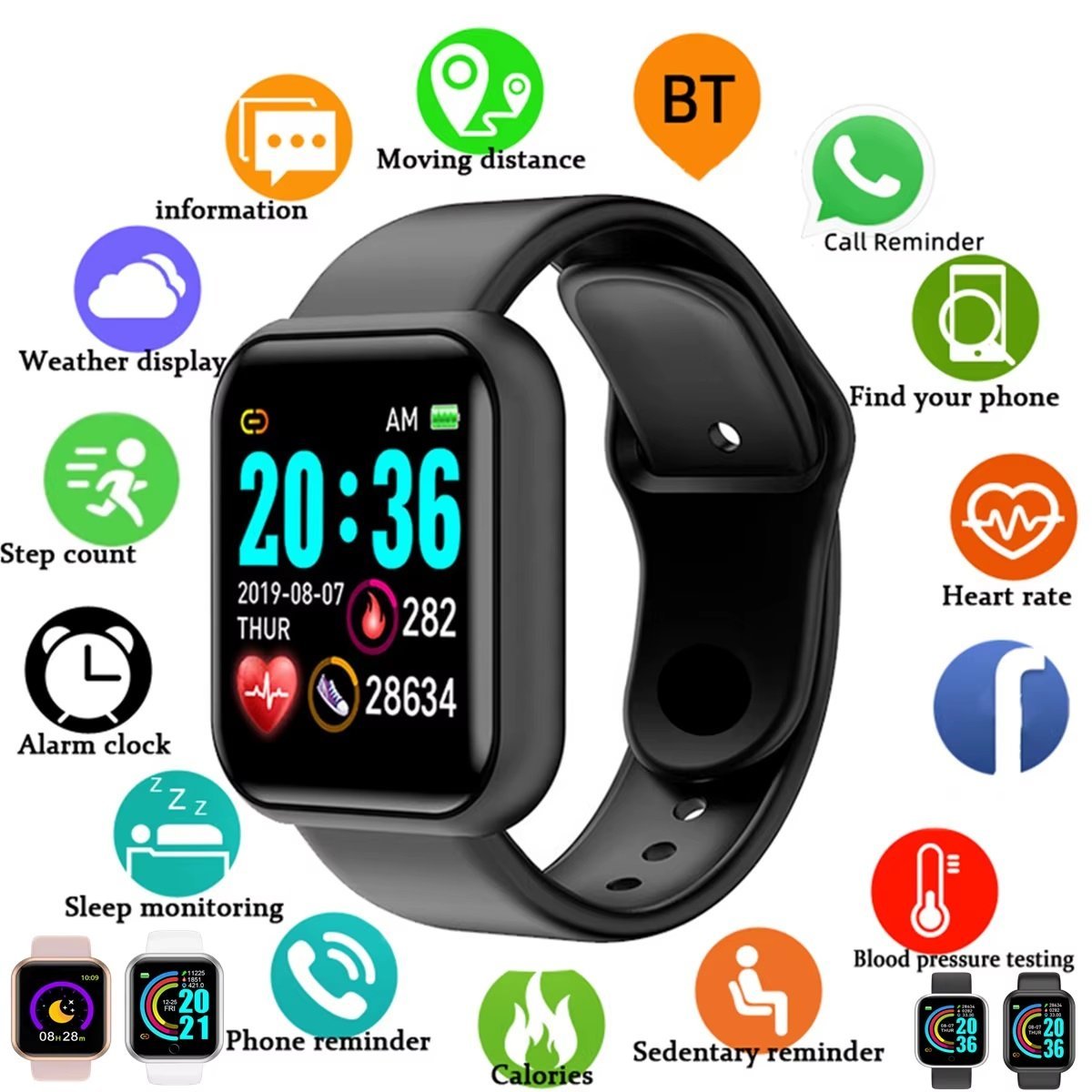 الساعة الذكية تجمع بين التصميم العملي والوظائف الذكية لمتابعة نشاطك اليومي بسهولة وراحة. تساعدك على قياس الخطوات والسعرات الحرارية ومعدل ضربات القلب وجودة النوم، مما يتيح لك مراقبة حالتك الصحية وضبط نمط حياتك بشكل أفضل. كما تدعم عرض الإشعارات، والتنبيهات، وساعة المنبه، والعثور على الهاتف، لتكون دائمًا على اتصال. تتميز بسوار مصنوع من مادة TPU الصديقة للبشرة وخفيفة الوزن، ما يجعلها مريحة للاستخدام طوال اليوم. بالإضافة إلى ذلك، تعتمد الساعة على الشحن المباشر عبر USB دون الحاجة إلى كابل شحن، وتدعم عدة لغات لتناسب مختلف المستخدمين، مما يجعلها خيارًا عمليًا للاستخدام اليومي.
