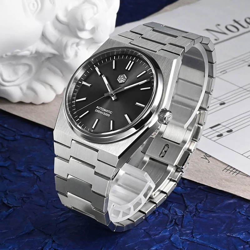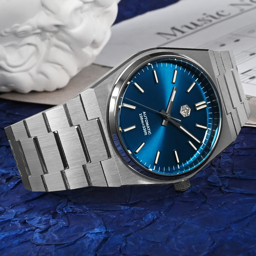 العلامة التجارية: سان مارتن الموديل: SN0023-G الحركة: ميوتا 9015 [حركة ميكانيكية أوتوماتيكية] العلبة: المادة – ستانلس ستيل 316L قطر 40 ملم العروة إلى العروة 45 ملم سمك 10.8 ملم عرض السوار 12 مم – 28 مم الزجاج: زجاج كريستال ياقوتي، طلاء AR. لون القرص: أزرق شمسي، فضي شمسي، أسود شمسي، مؤشرات مطبقة ثلاثية الأبعاد العقارب: عقارب GS Crafts، طلاء مضيء مضيئة: BGW-9 الضوء الأزرق التاج: تاج ملولب، مع شعار سداسي ثلاثي الأبعاد ظهر العلبة: علبة خلفية صلبة ملولبة، عملية مصقولة الحزام: سوار من الفولاذ المقاوم للصدأ 316L صلب سريع التحرير، 12 مم – 28 مم * 18 مم المشبك: مشبك الفراشة/مشبك مخفي بزر ضغط مقاومة الماء: 10 بار = 100 متر الوزن: حوالي 133 جرام الضمان: 2 سنة