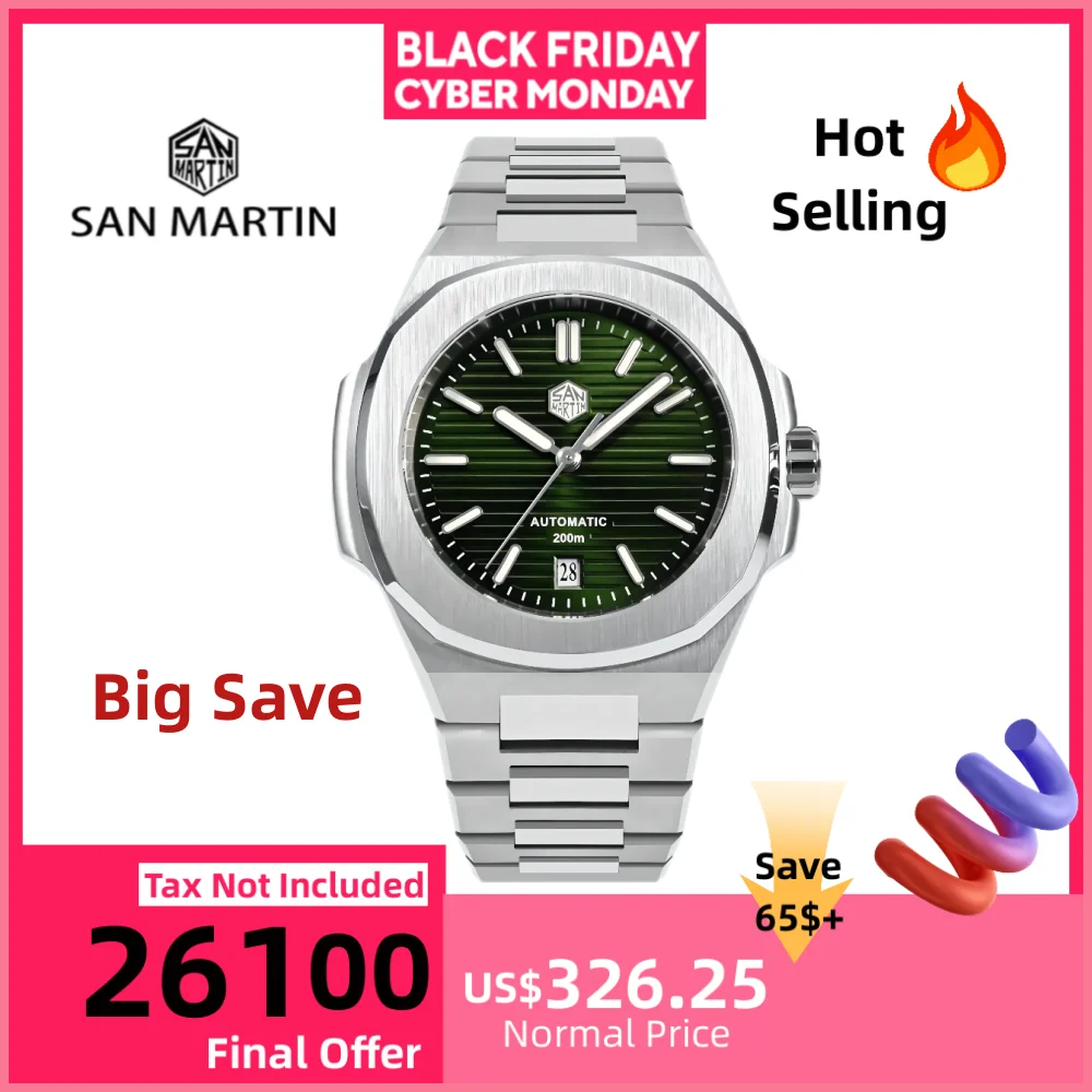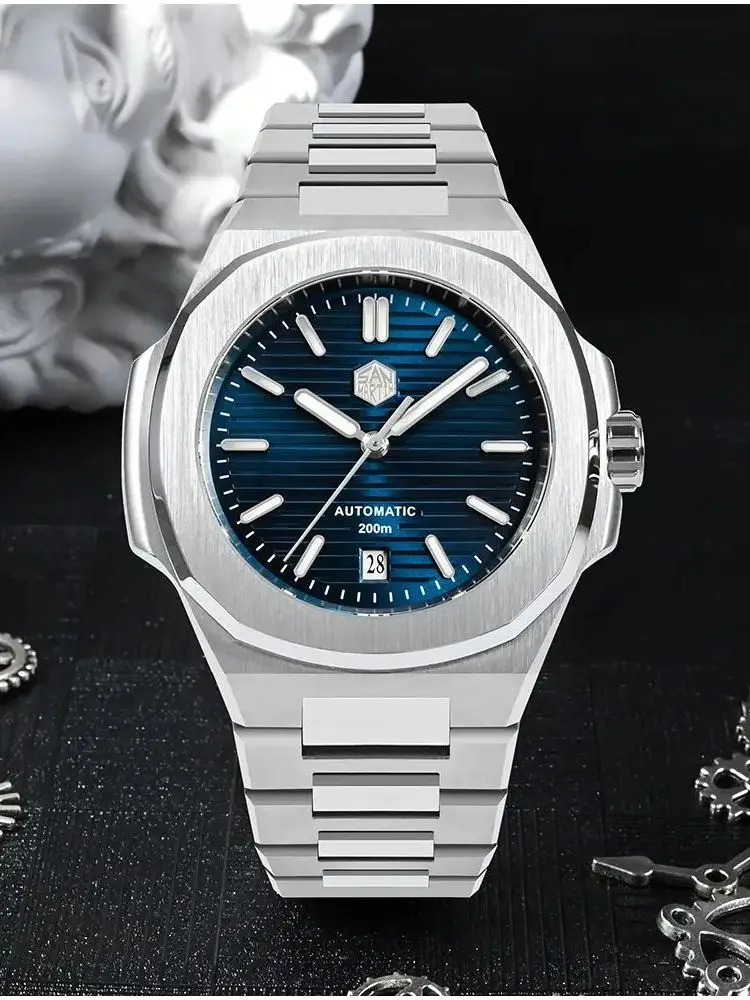 ساعة معصم للرجال سان مارتن San Martin SN0075 ساعة ميكانيكية أوتوماتيكية بتصميم رياضي أنيق، تجمع بين الأداء العالي واللمسات الجمالية الدقيقة.