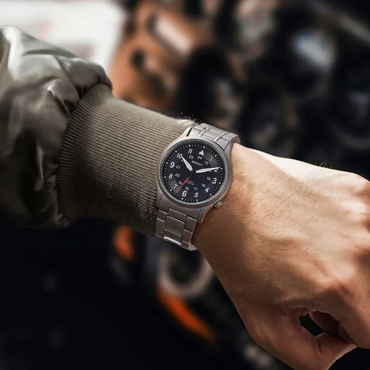المزيج الفريد من حركة الكوارتز والتصميم الميداني/الطيار.